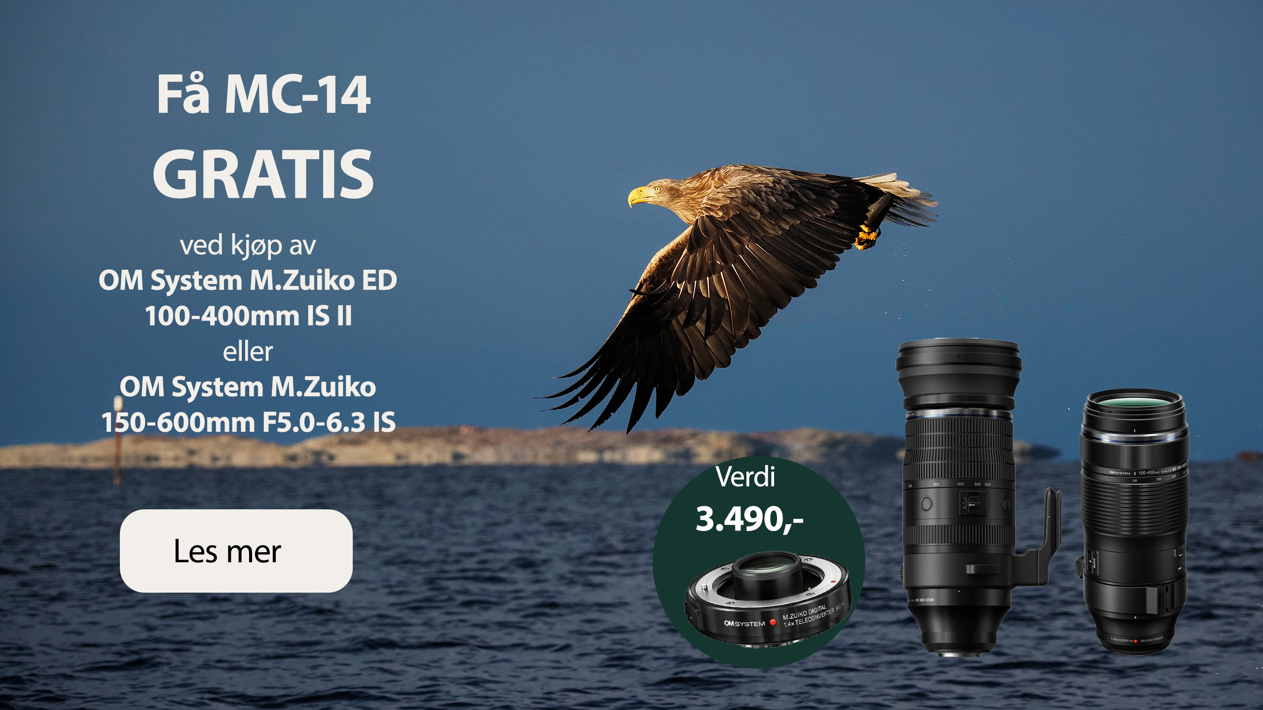 I perioden 16.–30. april 2026 får du telekonverteren MC-14 med på kjøpet når du handler enten 100–400mm Mk II eller 150–600mm. Dette er en unik mulighet for deg som vil ta steget enda nærmere motivene – uten å investere i større og tyngre utstyr.