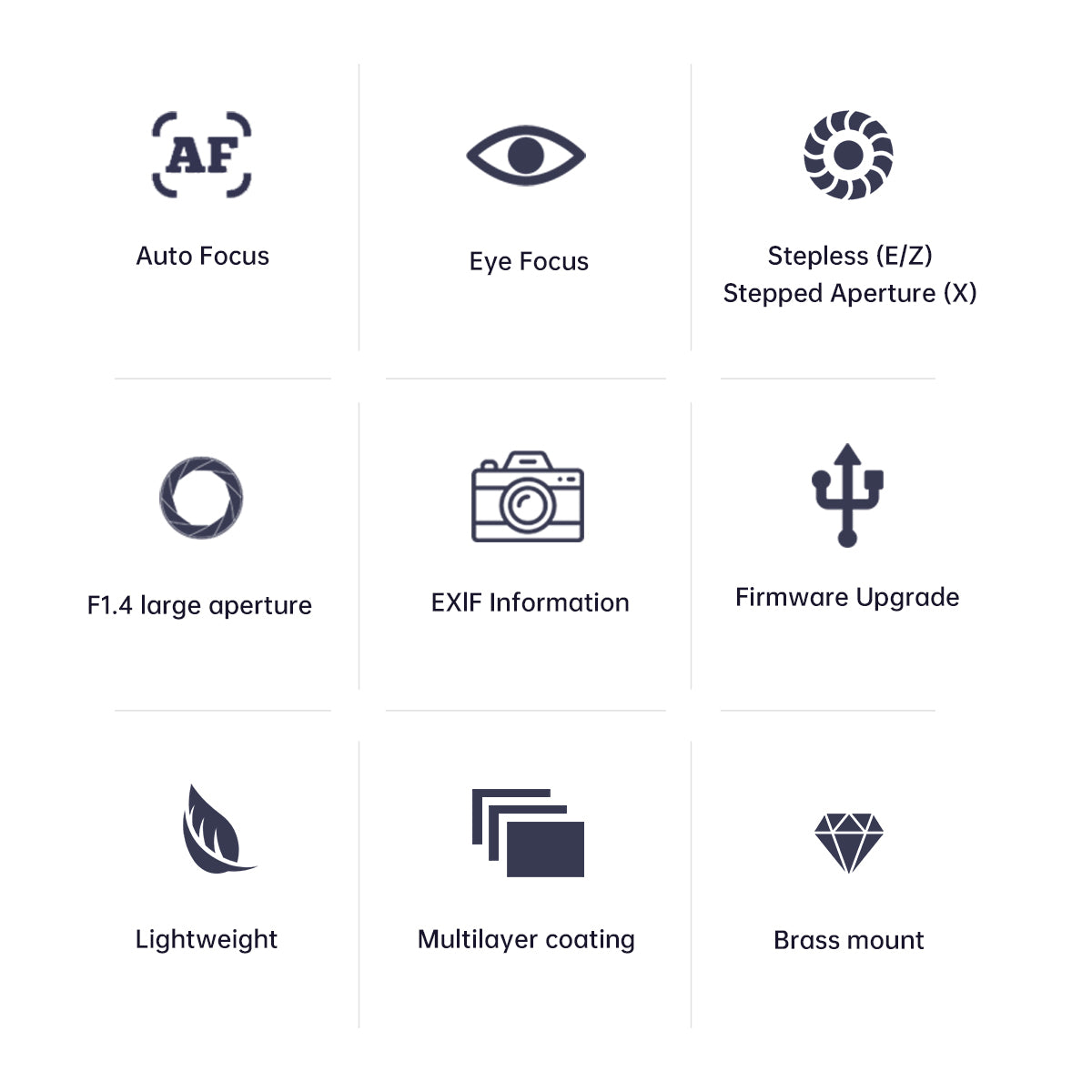 | Ekstremt lyssterk f/1.4 for svakt lys og kreativ bokeh | Mangel på værforsegling |